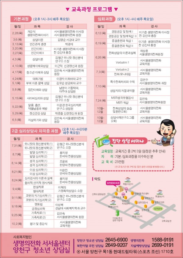 있으며 생명의 전화에서 주최하는 각종 교육에