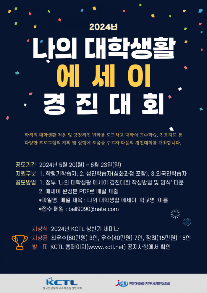 2024년 나의 대학생활 에세이 경진대회 페이지 정보 작성자 사회복지 작성일2024-05-16 08:39 조회1,179회 댓글0건 관련링크 이전글 다음글 목록 본문 2024년 나의 대학생활 에세이 경진대회 댓글목록 등록된 댓글이 없습니다. 이전글 다음글 목록