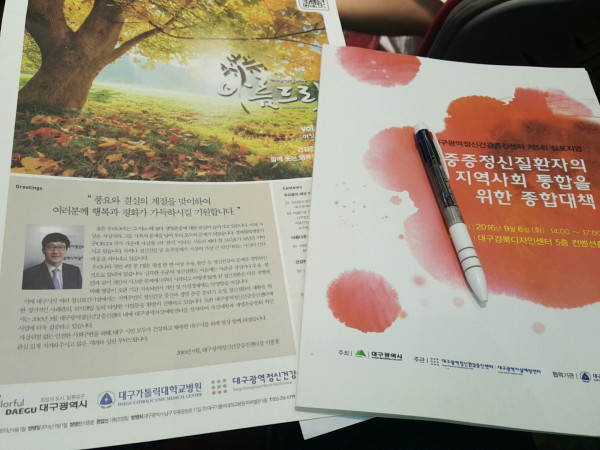 2016년 9월 6일 대구정신건강증진센터 심포지엄 -1 페이지 정보 작성자 관리자 작성일2016-09-07 20:02 조회1,358회 댓글0건 관련링크 이전글 다음글 목록 본문 중증정신질환자의 지역사회 통합을 위한 종합대책 책자 및 신문 이전글 다음글 목록