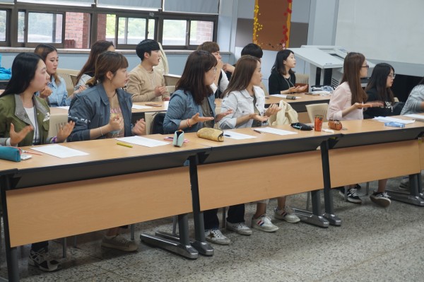 2016년 5월 2일 수화동아리 - 4 페이지 정보 작성자 관리자 작성일2016-05-15 09:22 조회1,385회 댓글0건 관련링크 이전글 다음글 목록 본문 학생들이 교수님께서 노래를 부르면서 수화하는 모습 이전글 다음글 목록