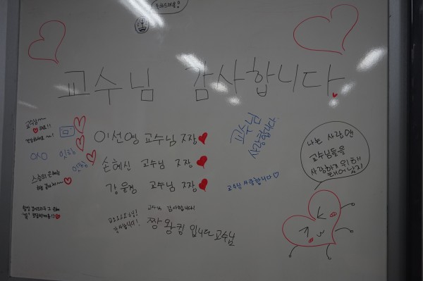 2016년 5월 16일 스승의날 행사 - 2 페이지 정보 작성자 관리자 작성일2016-05-18 09:41 조회1,636회 댓글0건 관련링크 이전글 다음글 목록 본문 학생들이 칠판에 교수님 감사합니다,사랑합니다 글을 써 놓는것 이전글 다음글 목록