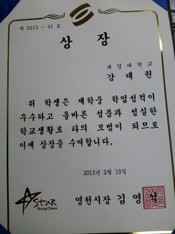 강대권학생 영천시장상 수상 축하합니다~ 페이지 정보 작성자 관리자 작성일2013-04-24 10:22 조회1,878회 댓글1건 관련링크 이전글 다음글 목록 본문 우리대학 사회복지과 강대권학생의 영천시장상 수상을 축하합니다~ 이전글 다음글 목록
