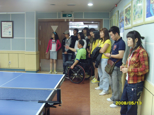 탁구대가 마련되어 있는 탁구 경기장을 둘러 보았어요.
