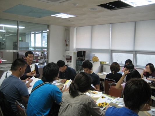 < 시설 담당자 선생님과 토론 수업 중이예요 >
