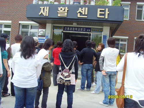 재활센타 내부로 들어가는 중이예요