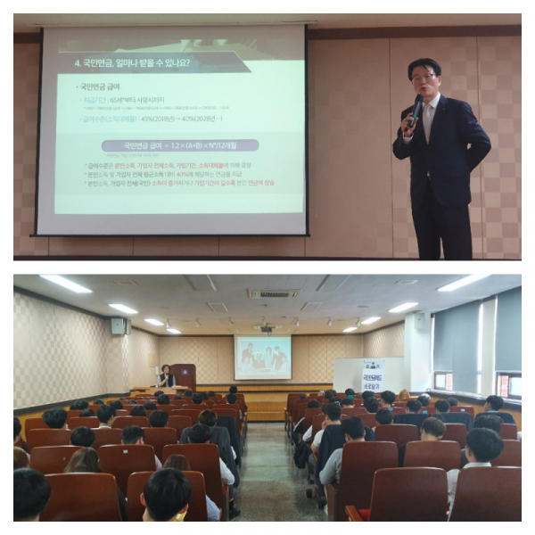 대경대학교 사회복지과 국민연금 특강 페이지 정보 작성자 사회복지 작성일2019-05-20 20:00 조회1,579회 댓글0건 관련링크 이전글 다음글 목록 본문 경상북도 국민연금 직원분께서 직접 대경대학교를 방문하여 특강에 참여하였습니다. 학생들은 유익한 시간을 보냈습니다. 이전글 다음글 목록