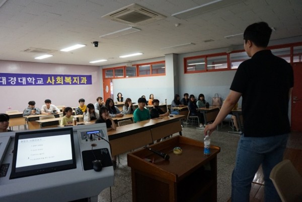 여성 장애인 복지관에서 근무하시는 사회복지사가 대경대학교 사회복지과 학생들에게 사회복지현장에 대한 특강을 해주셨습니다. 미래의 사회복지사가 될 준비과정으로 유익한 정보도 얻고 도움이 되었습니다.