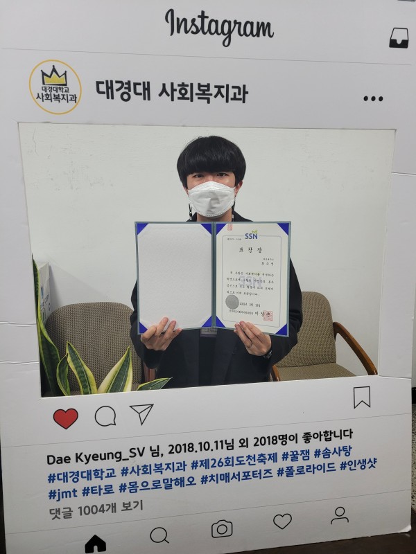 경북 사회복지협의회장 표창 - 4학년 최은성 페이지 정보 작성자 사회복지 작성일2022-03-22 12:03 조회803회 댓글0건 관련링크 이전글 다음글 목록 본문 경북 사회복지협의회장 표창 - 4학년 최은성 축하합니다.^^ 이전글 다음글 목록